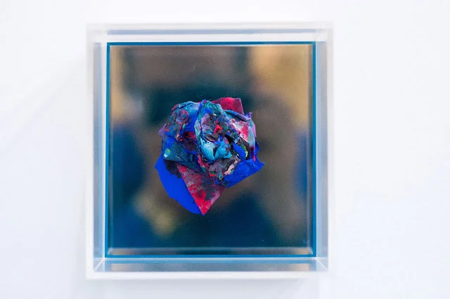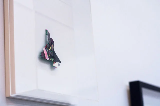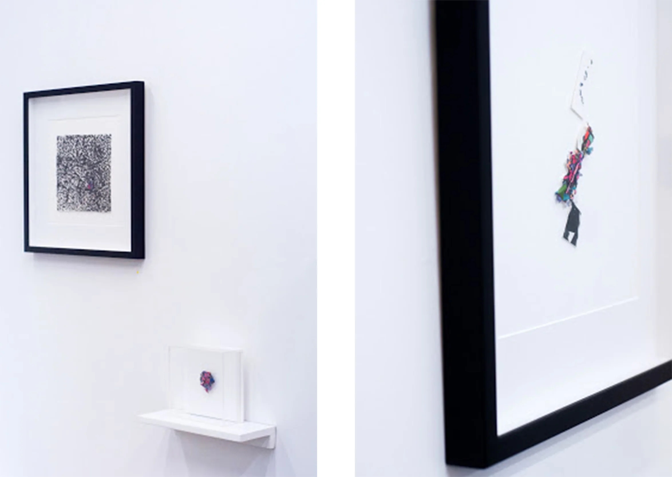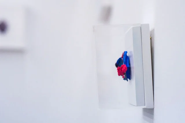 “Próxima Isla” showcases a series of collages that embark drawing, sculpture and painting in a solo journey through a micro-world of colors, textures and thoughts. Like endangered species in a laboratory, each “island” is guarded inside a delicate transparent acrylic box, same box that serves as the limiting point of tridimensional abstraction, Dadaist energizing vultures and clean architectonical lines and shapes.